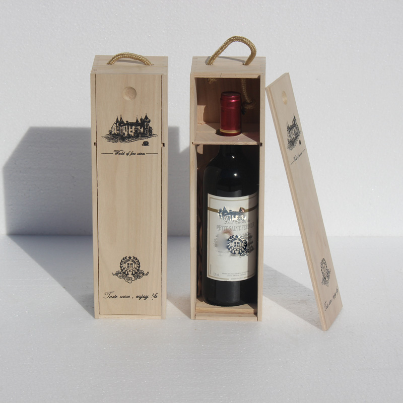 > 紅酒木盒單支裝桐木抽拉蓋