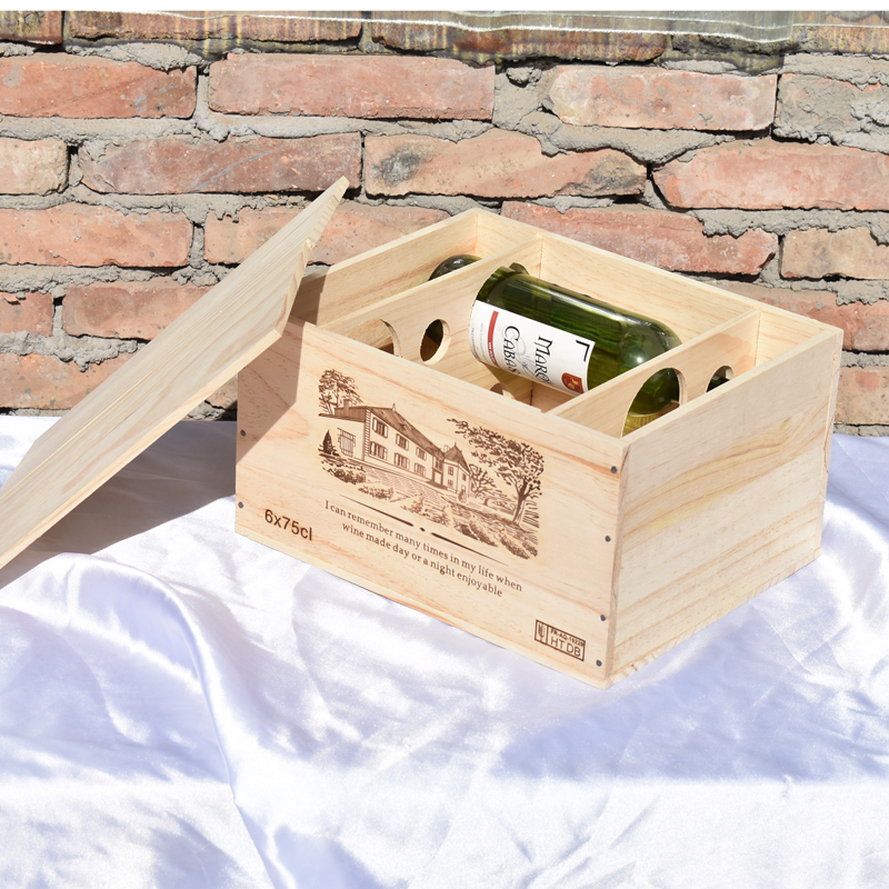 6瓶裝一盒紅酒包裝仿進口木頭箱
